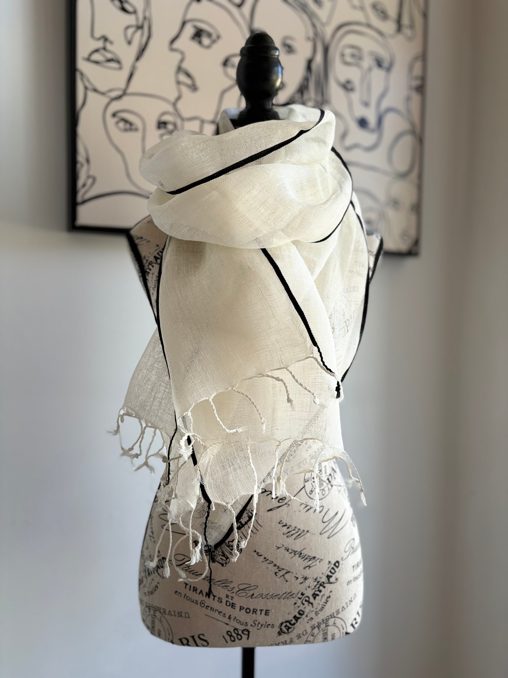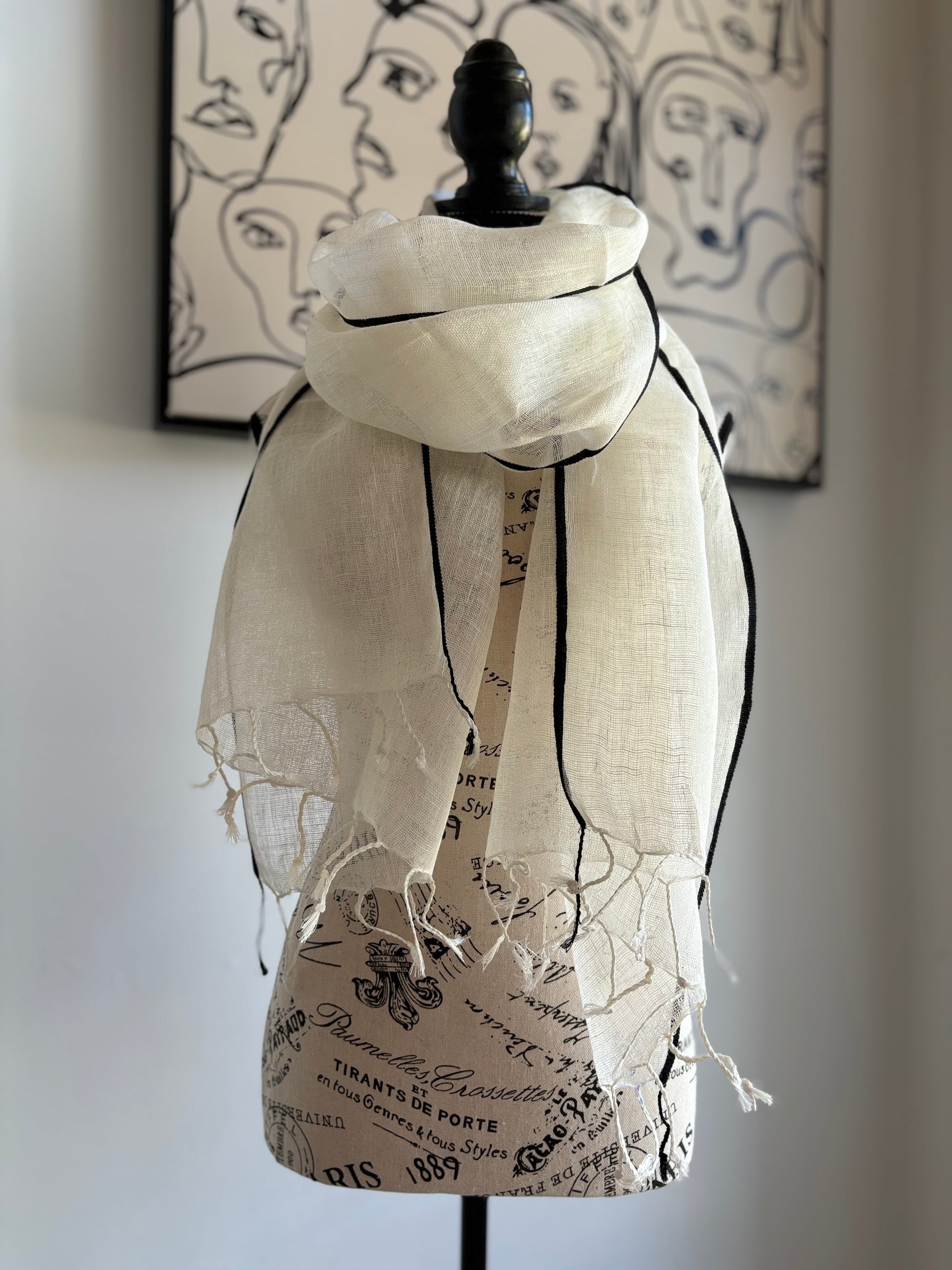 Scarf Linen Handwoven Black Selvedge